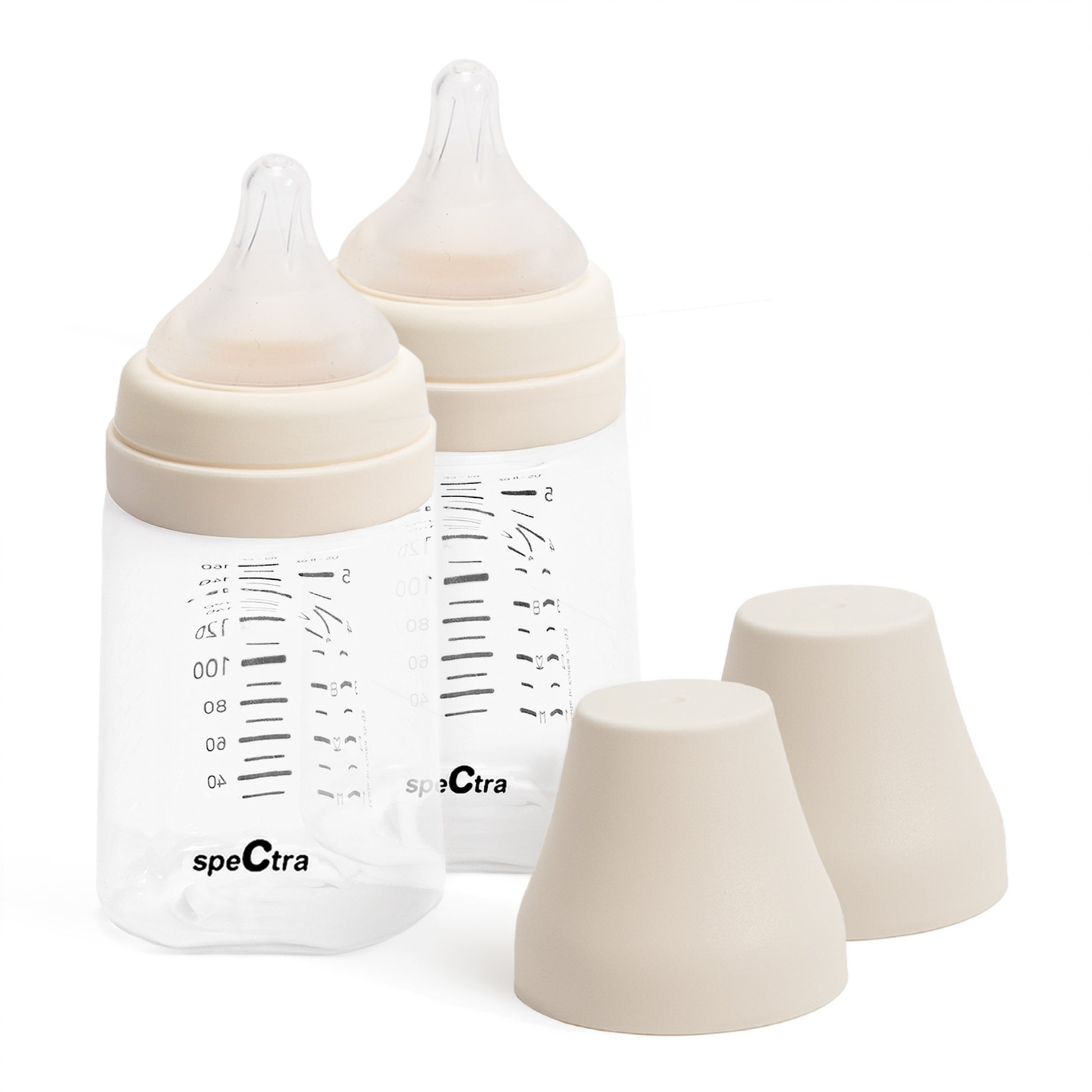 Incluye 2 biberones de cuello ancho Spectra con tetina peristáltica. Perfectos para bebes de lactancia materna o alimentados con fórmula infantil. Compatibles con toda la línea de accesorios Spectra: extractores de leche materna, repuestos y biberones anticólicos sin BPA.