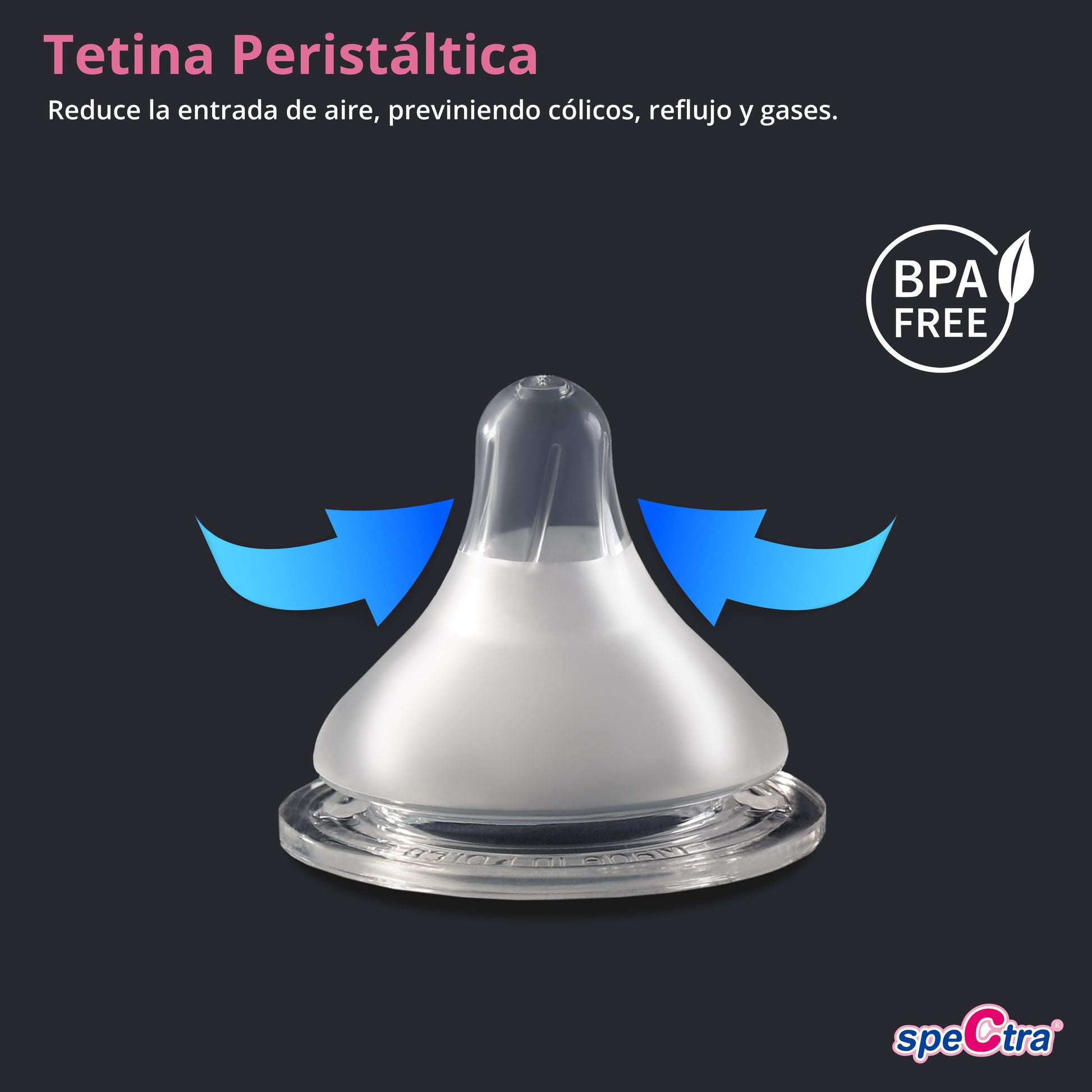 Los biberones Spectra con tetina peristáltica simulan la lactancia materna, favoreciendo una succión natural y cómoda para tu bebe. La mamila con sistema anticólicos reduce la entrada de aire, ayudando a prevenir cólicos, reflujo y gases. Biberones anticolicos y mamila para recién nacido y otras etapas de tu bebe. Ofrecen una alimentación más tranquila, segura y saludable desde los primeros días.